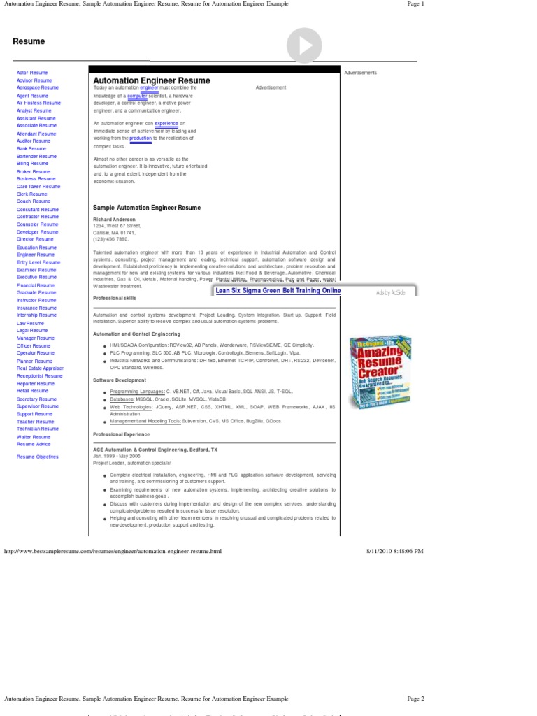 automation controls engineer resume