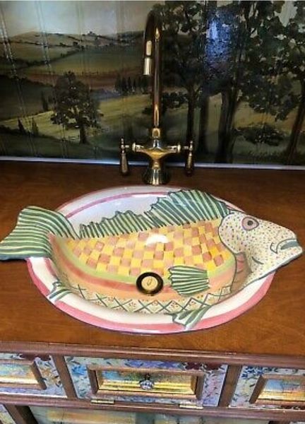 Mackenzie Childs Fish Bathroom Sink . Condition is Used. Local pickup only.