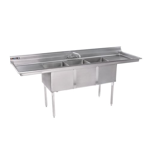 Custom stainless steel drainboard sinks from Handcrafted Metal easily contain and drain water while washing or cleaning, and can be made to perfectly fit your kitchen. Every feature can be customized, including the number, shape, and size of the bowls. Two Drainboard Sinks These two compartment sinks have two drainboards for maximized efficiency and workflow. Regency 72" 16-Gauge Stainless Steel Two Compartment Commercial Sink with Galvanized Steel Legs and 2 Drainboards - 17" x 17" x 12" Bowls # 600s217172g JUST SINKS cutting edge stainless steel sinks with drainboards available in single compartment models with double drainboards with a built-in
